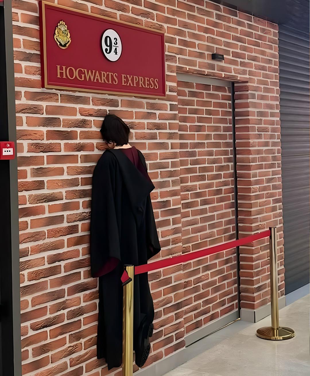 Но вместо бодрого Гарри получился максимально уставший магл в конце рабочего дня — с фирменным взглядом: «Да, я тут стою, и что». А стене, через которую он должен был пройти, кажется, досталась главная роль. Судя по её выражению, она увидела эту инсталляцию за секунду до и просто приняла свою судьбу.