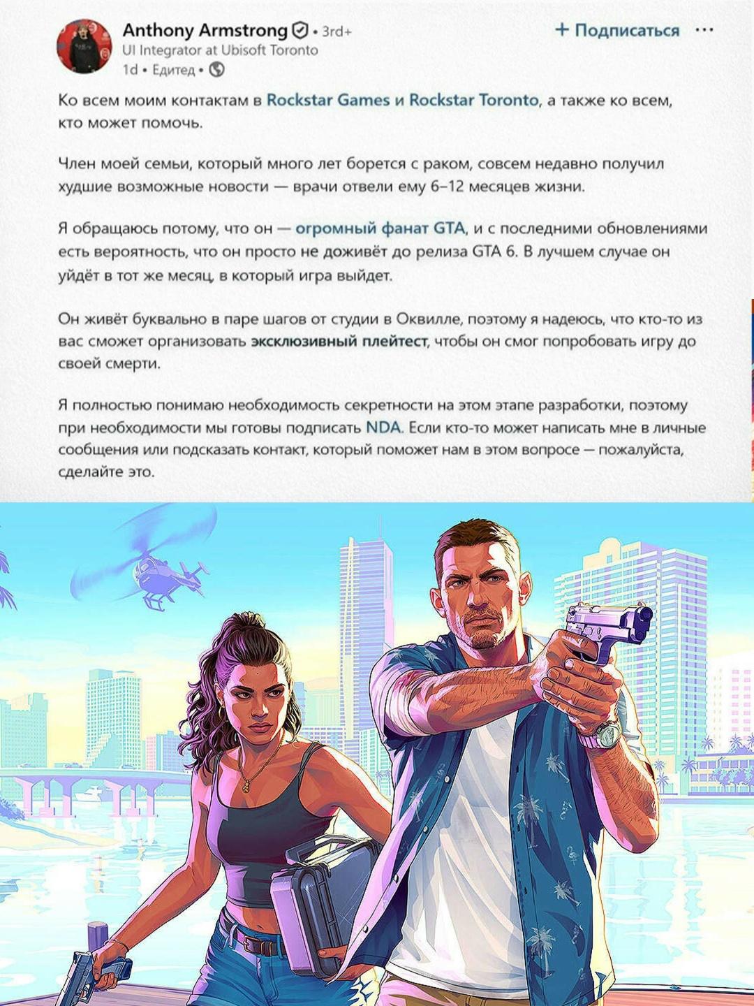 История началась с поста обычного сотрудника Ubisoft, который рассказал о своём родственнике, борющемся с онкологией: прогнозы врачей тяжёлые, а заветной мечтой мужчины было хотя бы одним глазом увидеть продолжение любимой серии, ведь релиз GTA VI намечен только на следующий год. Вместо формальных слов поддержки разработчики Rockstar сами вышли на связь и пообещали дать фанату ранний доступ к игре, чтобы он смог прикоснуться к ней одним из первых в мире, не дожидаясь официального старта продаж. В эпоху, когда крупные корпорации чаще ассоциируются с патчами и микротранзакциями, этот жест выглядел почти сюрреалистично — просто человеческое решение без маркетинговых баннеров.