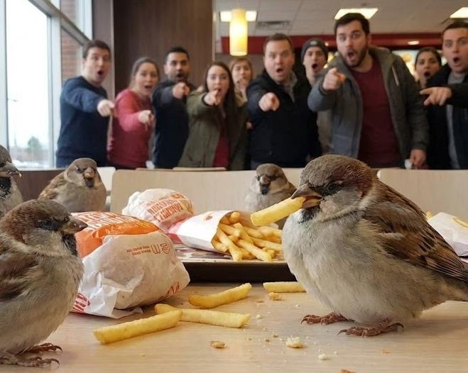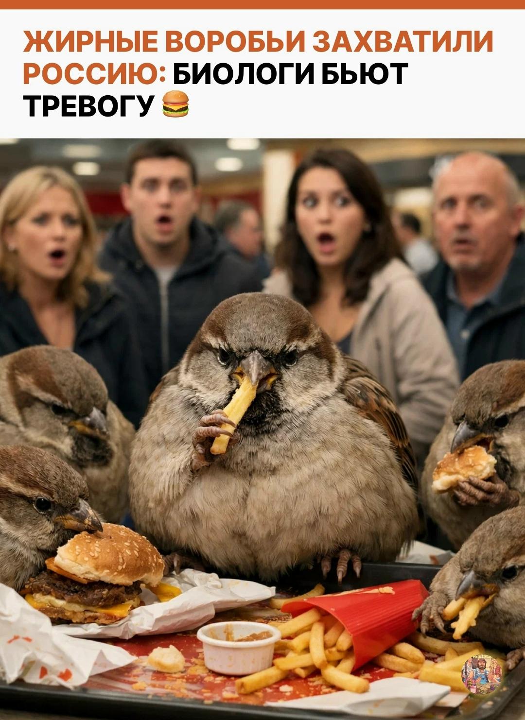 В России появилось необычное явление — толстые воробьи. Специалисты в области биологии выражают обеспокоенность: птицы перестали добывать пищу самостоятельно и стали часто посещать фудкорты, где едят картошку фри и остатки бургеров.