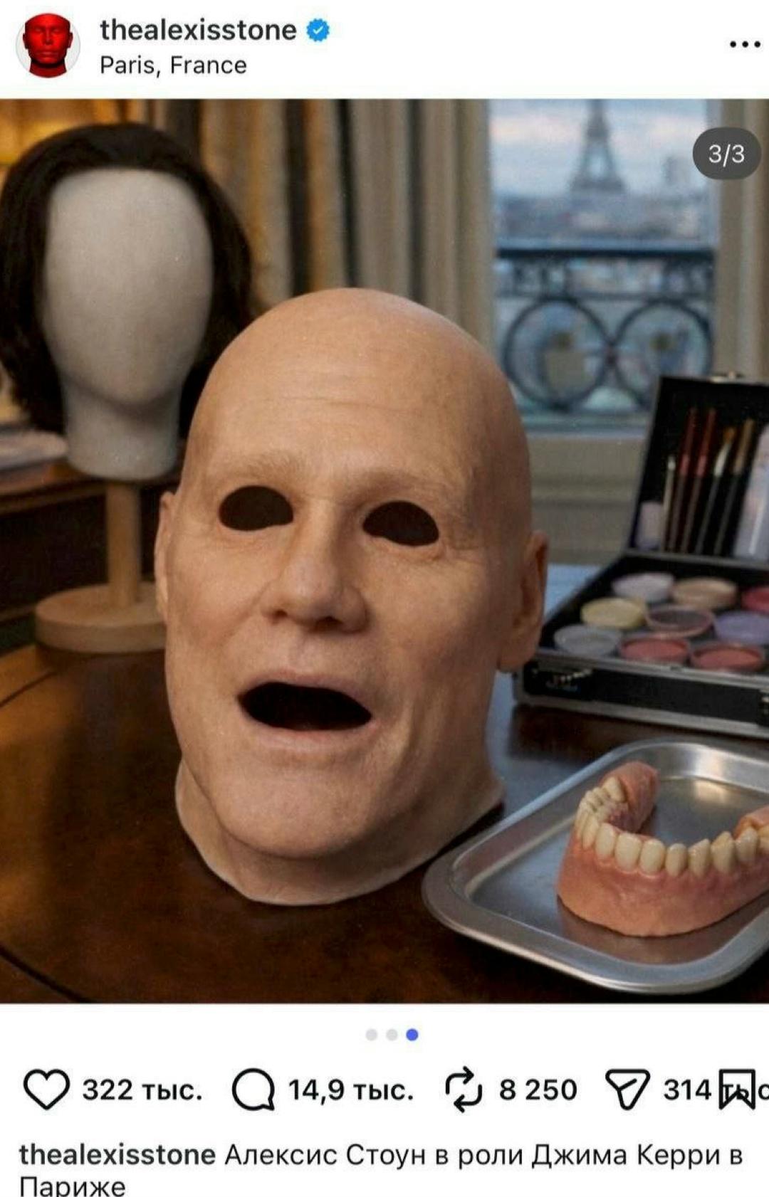 Затем появился известный гримёр Алексис Стоун и заявил, что на мероприятии в Париже был он, надев реалистичную маску Керри. Ранее он проворачивал подобные трюки с другими знаменитостями.