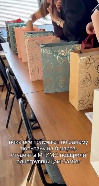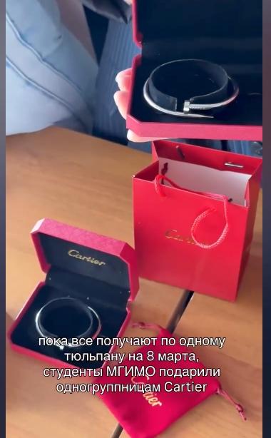 Студенты МГИМО поздравили одногруппниц и подарили им на 8 Марта браслеты Cartier.