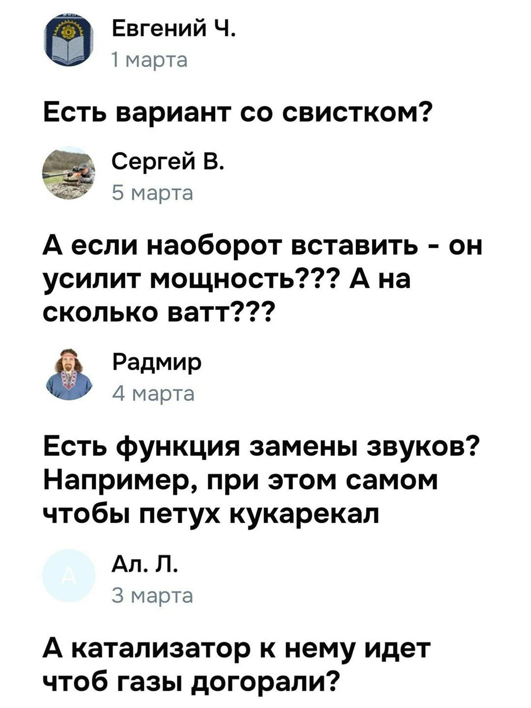 Судя по описанию и фото, это небольшая мягкая накладка или вкладыш, который якобы гасит акустические колебания. Однако настоящая жара происходит не в корзинах покупателей, а в блоке «Вопросы». Пользователи устроили там настоящий парад юмора: спрашивают, есть ли версия «Sport» с имитацией выхлопа Lamborghini, предусмотрен ли режим «беззвучный убийца» и можно ли использовать его как фильтр для очистки совести.