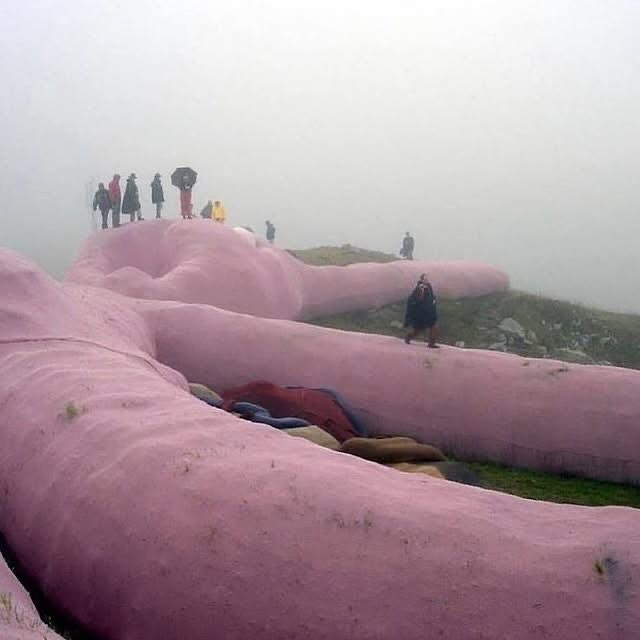 В 2005 году на склоне итальянской горы Коллето-Фава был установлен огромный розовый кролик длиной 60 метров. Этот арт-объект создал венский коллектив Gelitin.