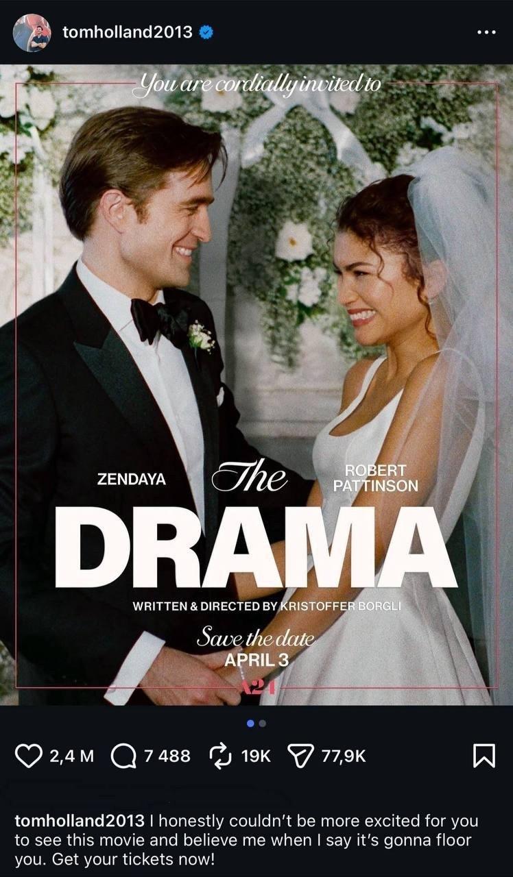 Актер из «Человека-паука» опубликовал в социальных сетях постер нового фильма с Зендеей в главной роли и написал: «Честно говоря, я искренне желаю, чтобы вы увидели этот фильм, и поверьте, он вас удивит. Не откладывайте, приобретайте билеты прямо сейчас!».