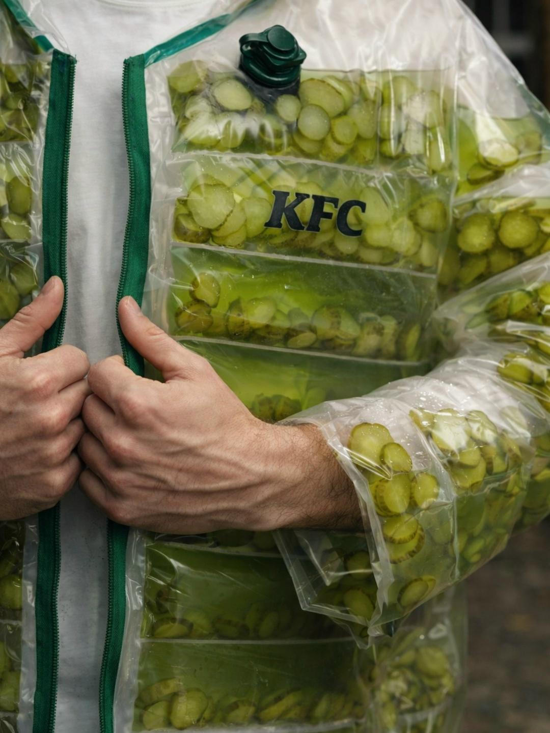KFC в Великобритании решило сделать невозможное и воплотило в жизнь вирусную идею из нейросети. В честь запуска нового меню с солеными огурцами бренд выпустил уникальную куртку, наполнителем для которой послужил… настоящий огуречный рассол. Ранее ИИ-видео с такой курткой взорвало интернет, и KFC решило не упускать шанс хайпануть по-крупному.