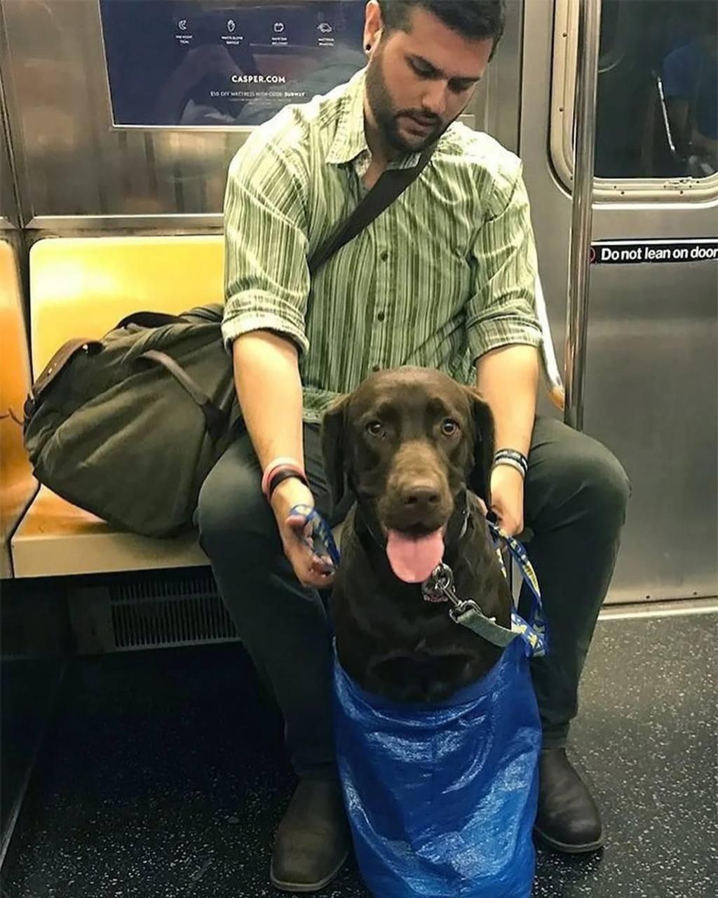 В Нью-Йоркском метро теперь нельзя перевозить домашних животных без специальных сумок-переносок. Тем не менее, хозяева собак оперативно придумали решение: они стали транспортировать своих любимцев в рюкзаках, сумках и даже в обычных пакетах.