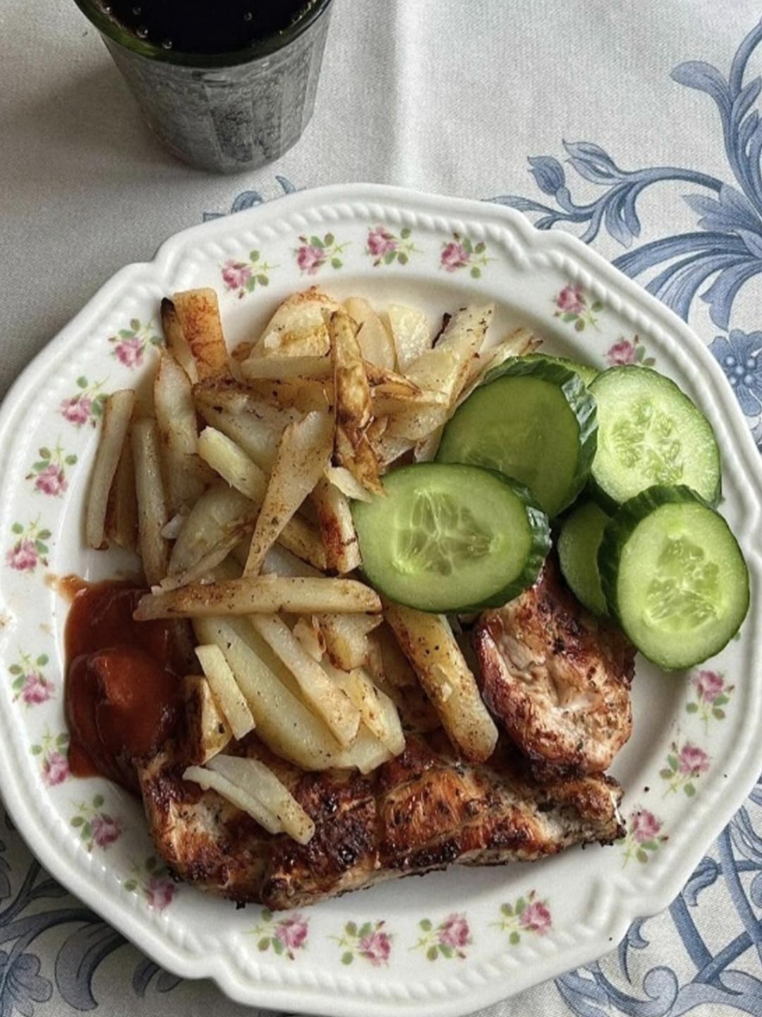 Парень решил наконец взять себя в руки: без “ой, сегодня читмил”, без “ну это же почти салат”, а по-взрослому — сфоткал ужин и отправил ИИ, чтобы тот честно посчитал калории. На фото всё серьёзно: курица, картошка, огурцы, кетчуп. Казалось бы, вот он — диалог человека с технологиями будущего.