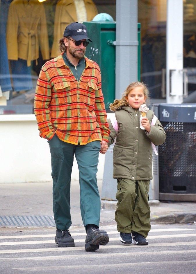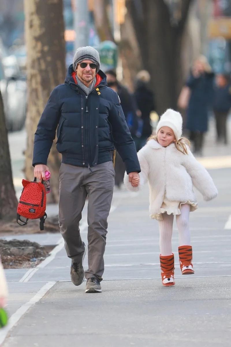 Брэдли Купера засняли на прогулке с дочкой Леей в Нью-Йорке.
